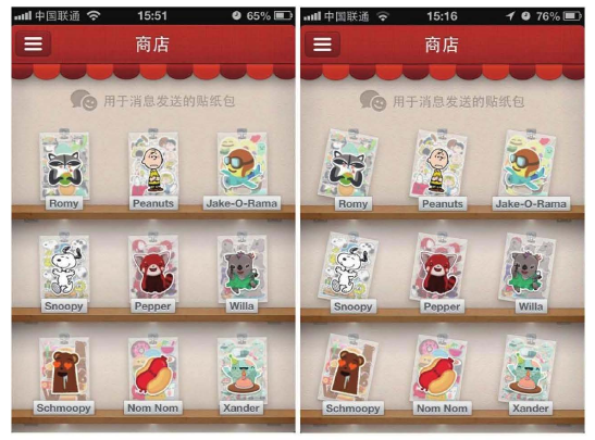 图1-8是Path3.0版推出的商店功能,网站设计者让用户可以在里面购买喜欢的贴纸。当你轻轻晃动手机时,贴纸会顺着你摇晃的方位改变角度,发现这个小变化,足以让人感觉兴奋和惊奇。试问使用这样的产品,你的体验能不好吗?